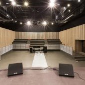 Entre la salle de concert et les studios, la jonction se fait par une passerelle existante et conservée, tout comme les ponts roulants, les portes blindées et quelques éléments de décor dans leur jus.